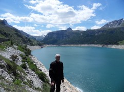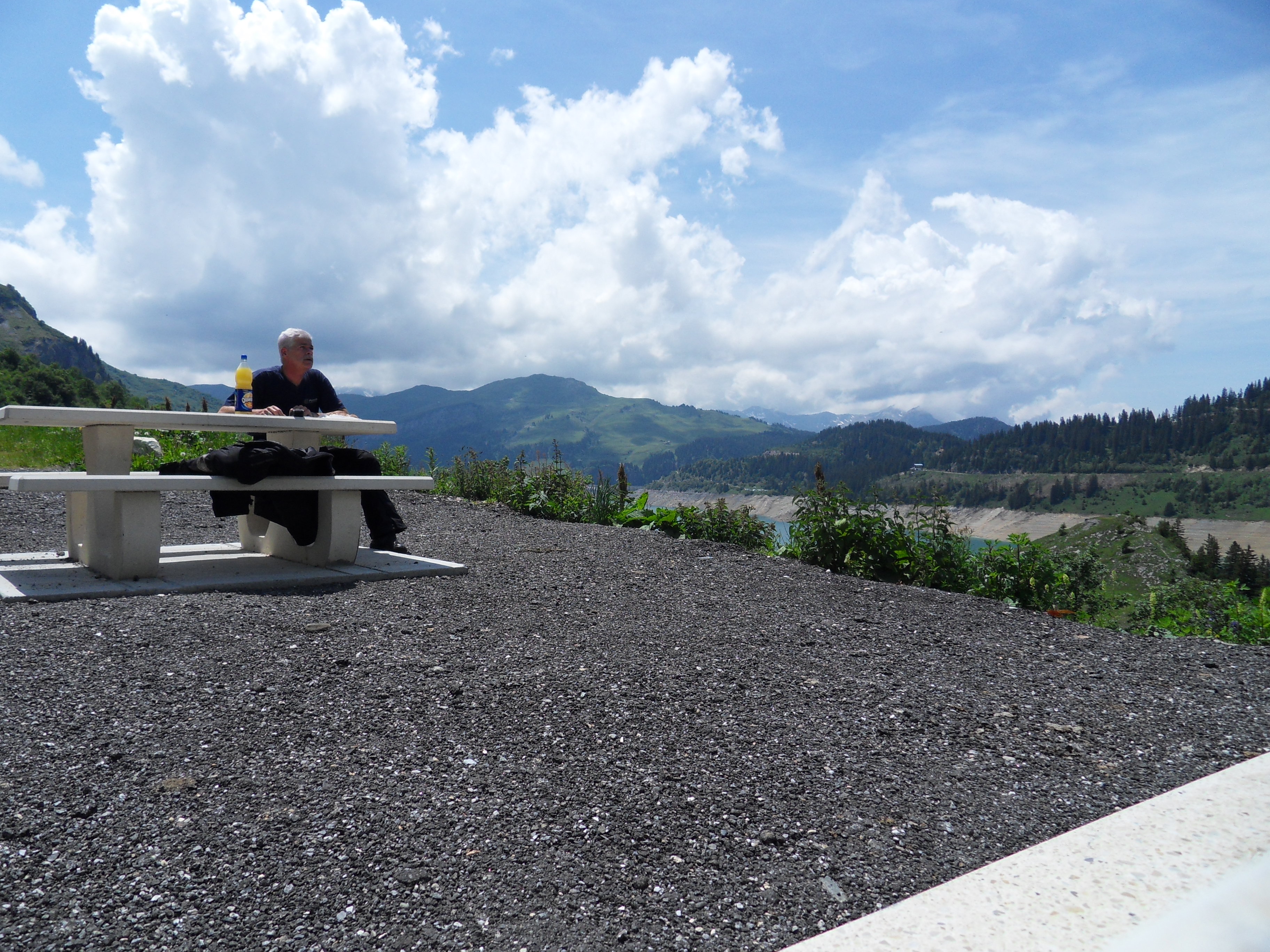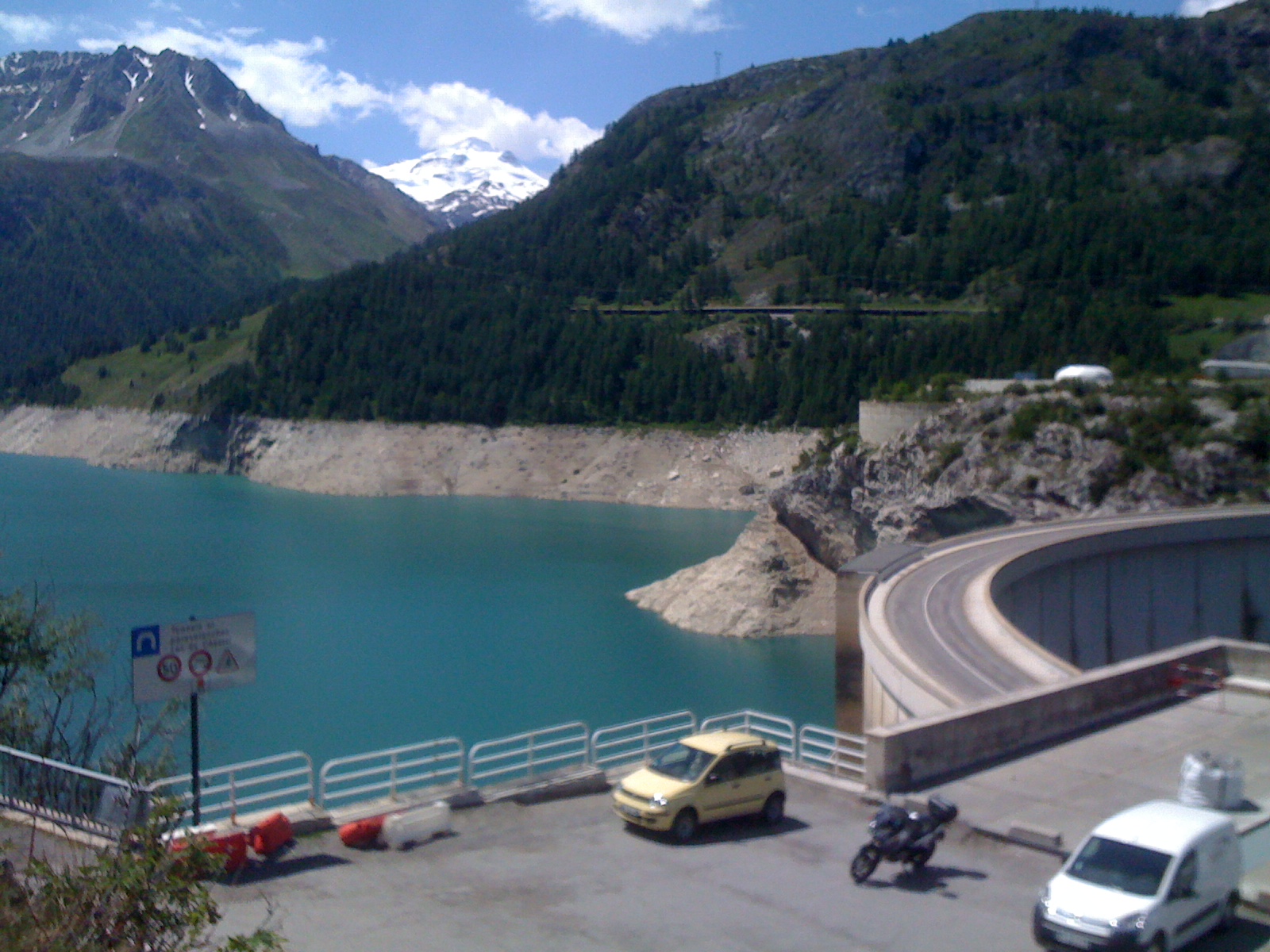 vom Col de L'Iseran weiter nach Val d'Isere bis zum Lac du Chevril. Bei der Staumauer machte ich Rast und verdrückte ein Sandwich genoss die Aussicht und machte mich danach auf den Weg Bourg St. Maurice von wo aus es wieder an stieg zum nächsten Pass den Cormet de Roselend weiter nach Beaufort. auf diesem Abschnitt kam ich an einem wunderbaren Platz am Lac de Roselend vorbei -