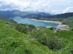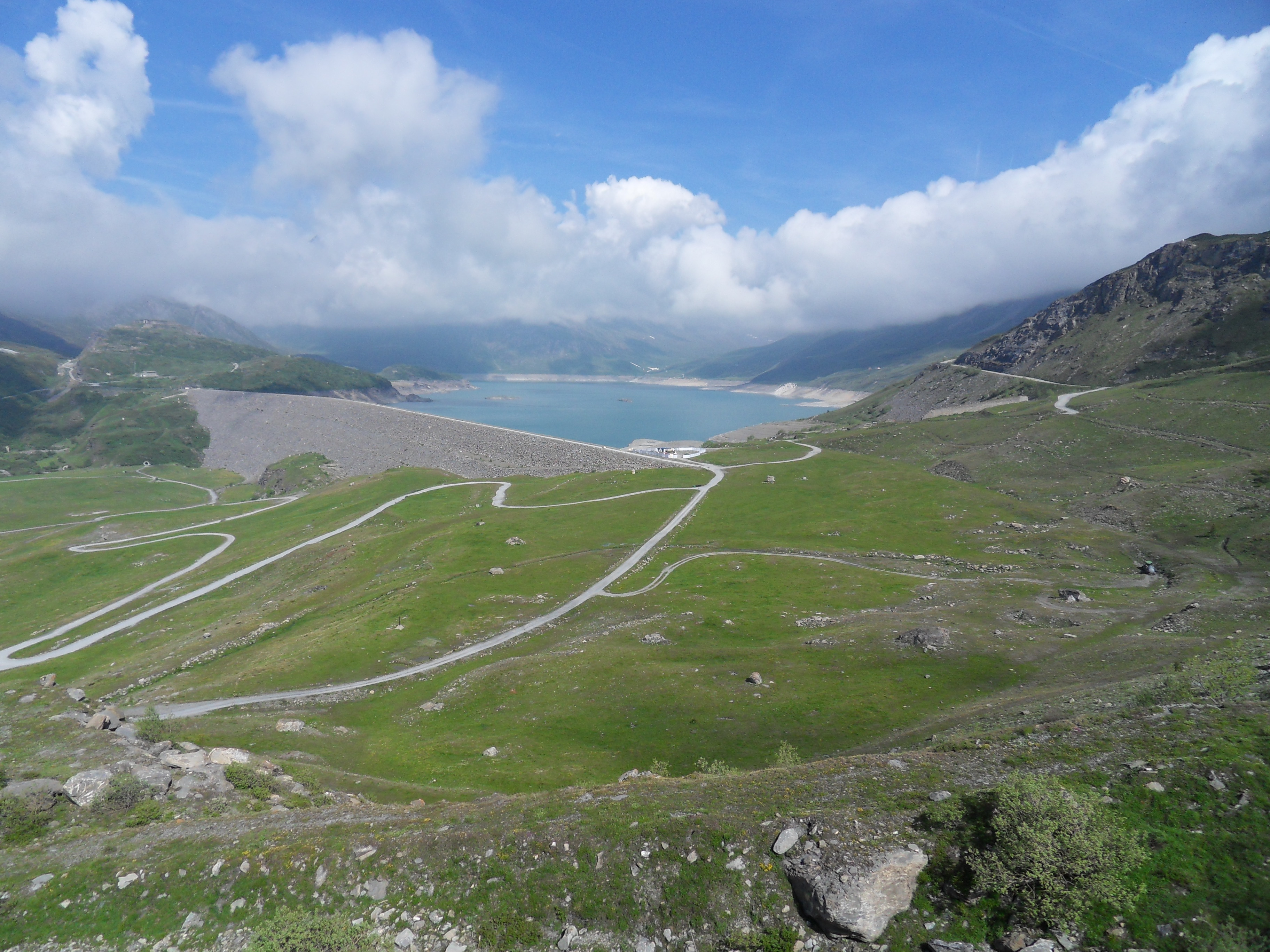 vom Col de L'Iseran weiter nach Val d'Isere bis zum Lac du Chevril. Bei der Staumauer machte ich Rast und verdrückte ein Sandwich genoss die Aussicht und machte mich danach auf den Weg Bourg St. Maurice von wo aus es wieder an stieg zum nächsten Pass den Cormet de Roselend weiter nach Beaufort. auf diesem Abschnitt kam ich an einem wunderbaren Platz am Lac de Roselend vorbei -